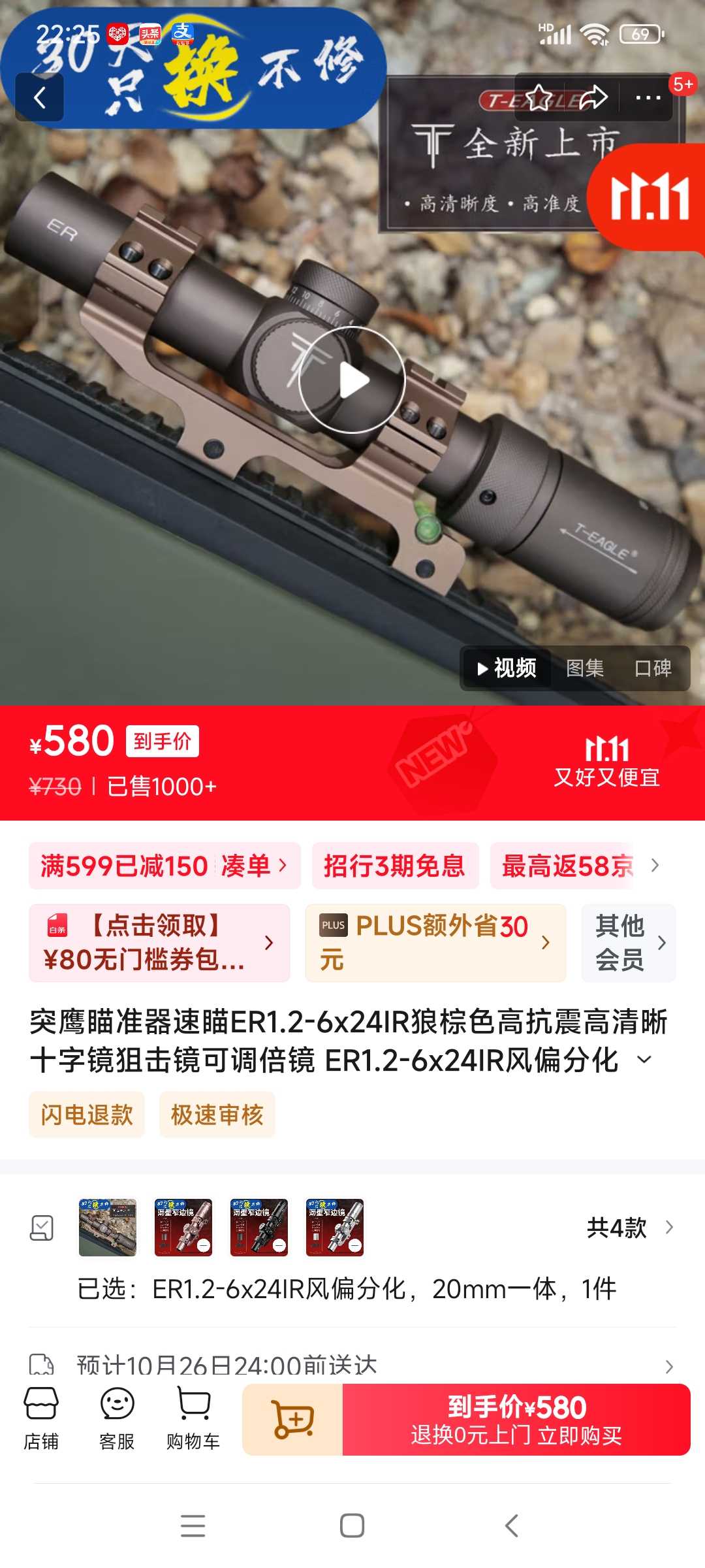 [二手出售] 全新四倍光纤海螺带rmr,维特野马,突鹰er,沼泽鹿速瞄,可乐用AR折叠转接 |